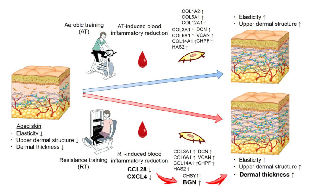 Resistance training rejuvenates aging skin by reducing circulating inflammatory factors and enhancing dermal extracellular matrices - Scientific Reports
