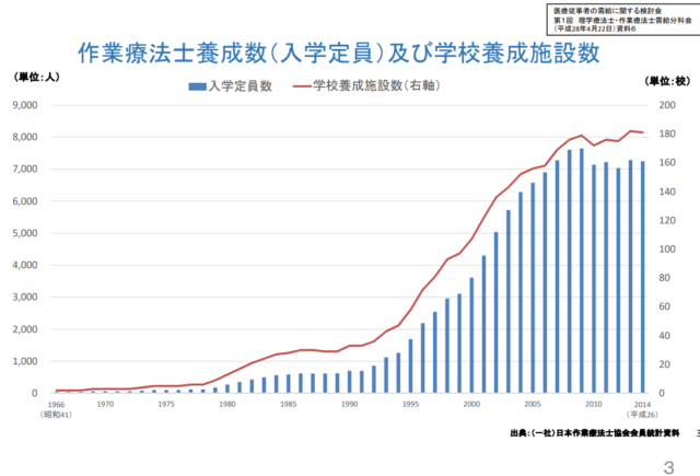 作業療法士は増え続けていますが、世界でもそんな国は日本くらいです。理学療法士もとんでもない勢いで増えています