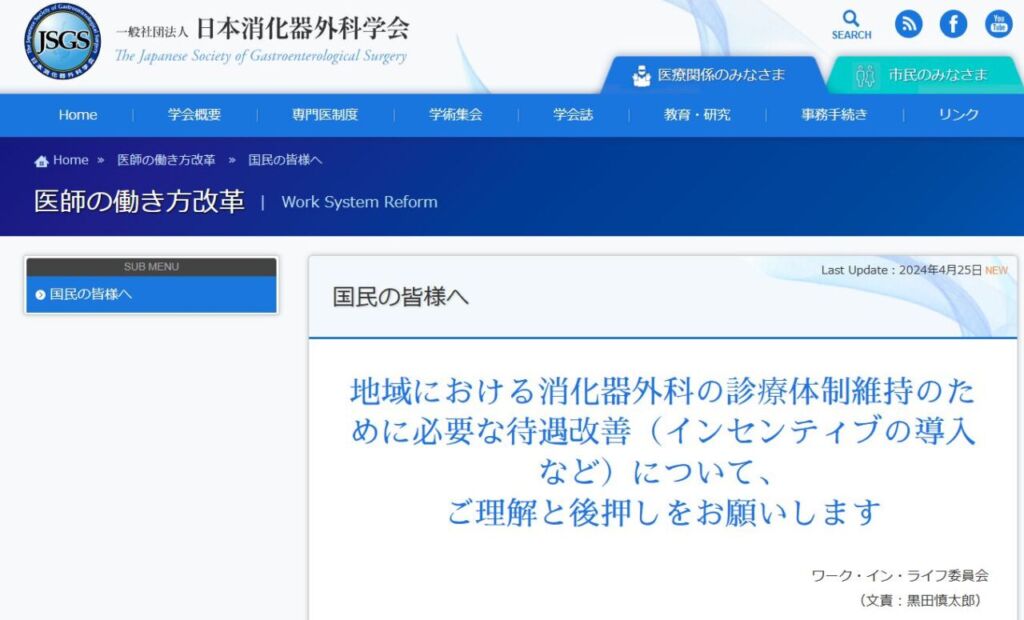例えば他の職種、教師ではどのようなことが起こっているのか、薄給で激務、クラブの顧問なども捺せられて疲弊しています。新人も入らなくて消化器外科医と同じような状況です。この状況で国民から陳情が来ているでしょうか?そんな声はあがっていませんよね。