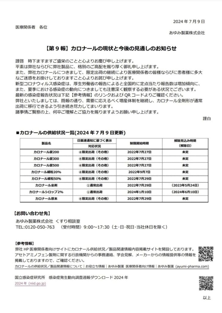 抗菌薬がなくなった、麻酔薬がなくなった、などといってたらまたカロナールがなくなりました。