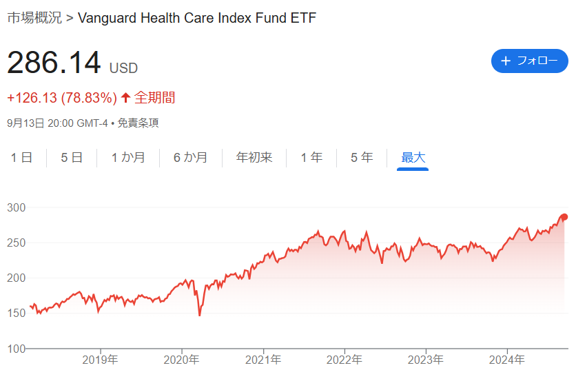 そんなときこそETFです。以前紹介したヴァンガードのVHTは3月時点で270ドルがいま286ドルとなりました。