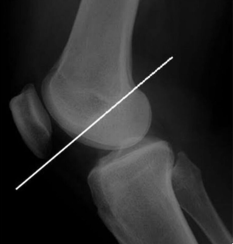 大腿骨顆間部の上縁をなぞるラインです。側面でみるとこのようになります。