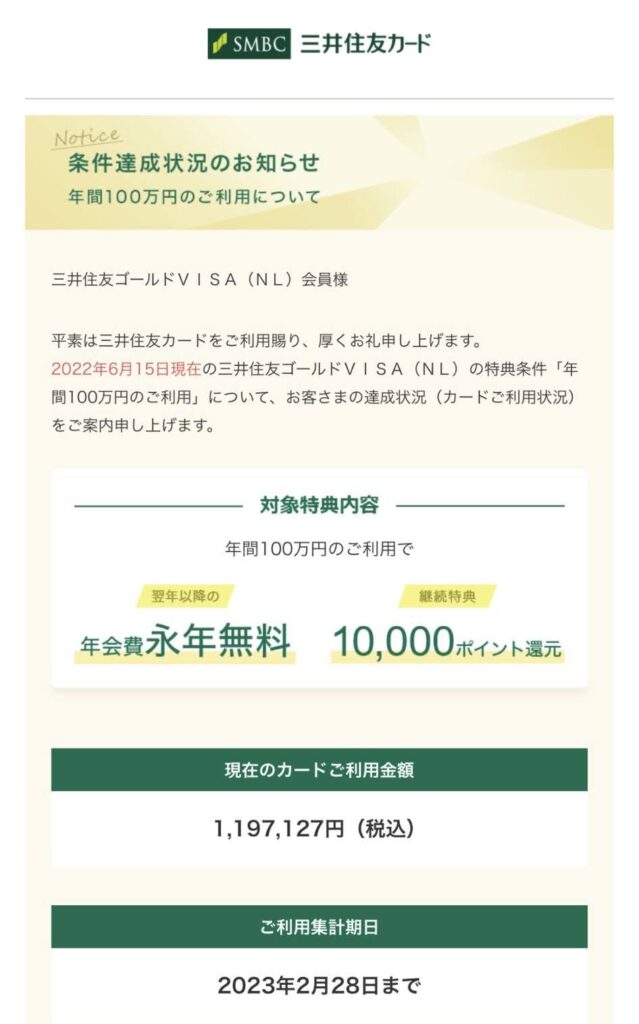 三井住友ゴールドナンバーレスカードの100万修行が終わりました。案外あっけなかったですね。