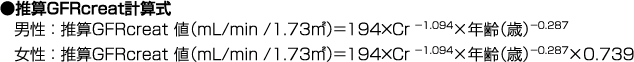 推算糸球体濾過量(eGFR)は血清クレアチニン値と年齢性別で算出されます。