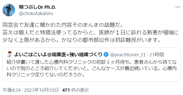開業医って意外と大変です。研修医のときは外来だけやって難しいのは大きな病院に丸投げして・・・と簡単なイメージでしたが実際そんなところはあまりなく、本気でやっているところは死ぬ気で働き続けています。それでいてしっかりと質も担保しているところも多いです。