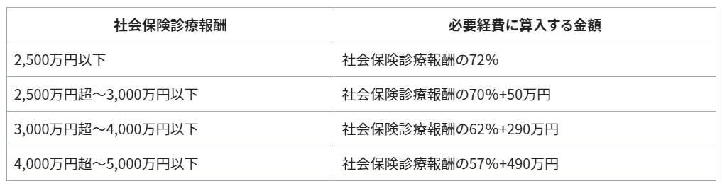 保険診療の金額が5000万円。経費にできるのはこの場合3340万円です。実際に使った額がこれより少なくてもこの額を控除できます。つまり年収が1660万円となります。