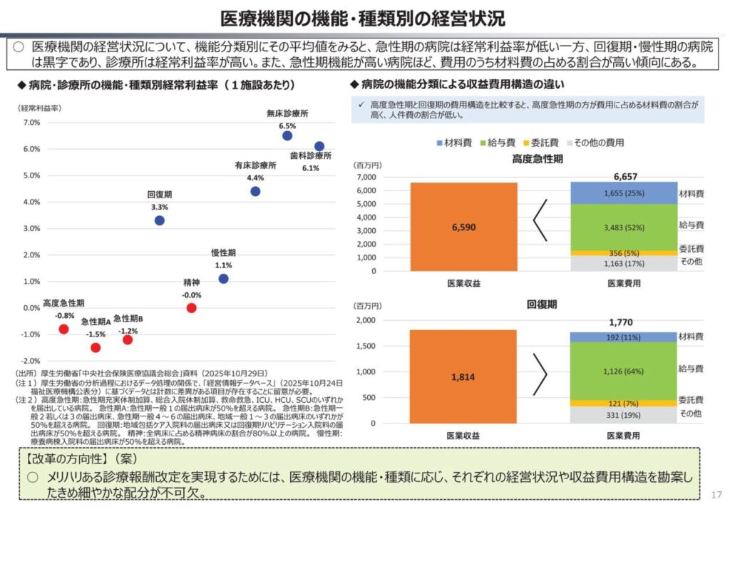 🏥 診療報酬改定の重点化:高度急性期・急性期病院に重点を置き、診療所とのメリハリある配分を推進。